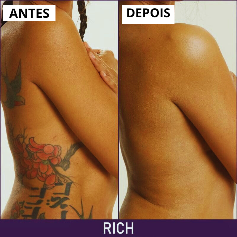 Pigmentos microencapsulados se ajustam automaticamente ao calor do corpo para uma fusão perfeita, seja para mascarar tatuagens ou realçar a luminosidade do colo.🎨
