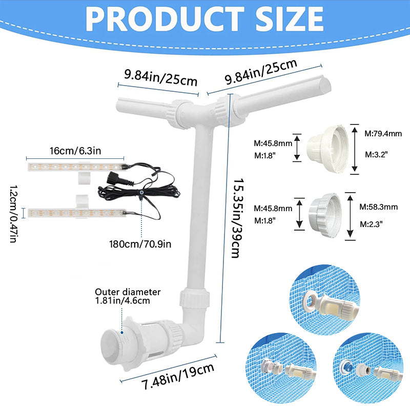 Alimentée par l'énergie solaire, la fontaine produit un jet doux en plein jour, baisse de temperature 6-15℉(2-7℃), et peut également offrir un magnifique lumineux à LED la nuit, apportant vitalité et ambiance à la piscine. Permettant de profiter pleinement de la piscine en toute sérénité.