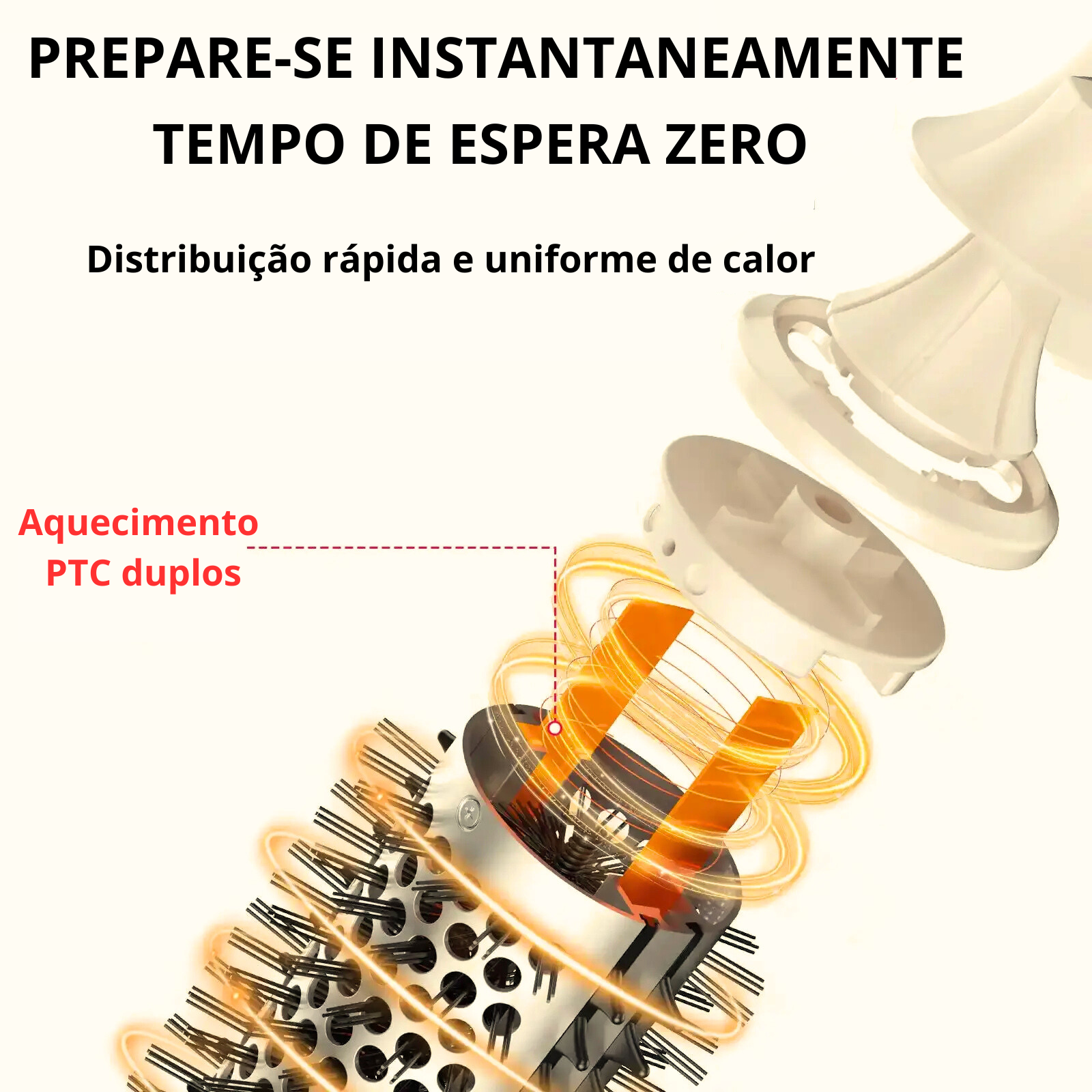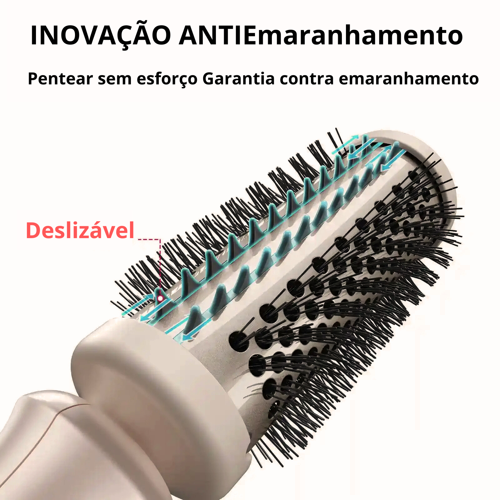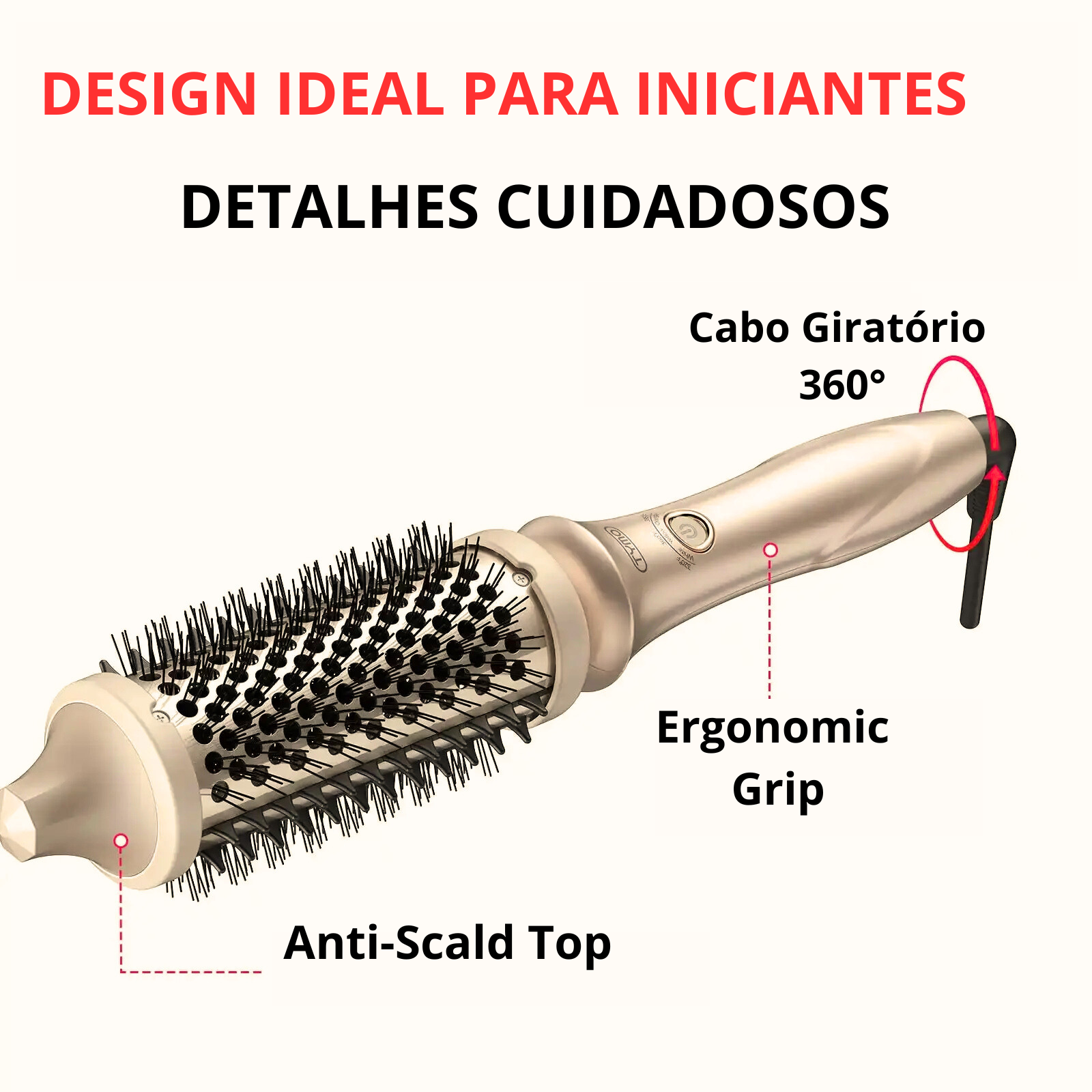 Projetada com precisão, a STYLUX apresenta um design de escova de cabelo redonda e quente, equipada com cerdas de nylon robustas que capturam e modelam com eficácia mais cabelo a cada passada. Seu cilindro de aquecimento amplo e avançado garante uma textura natural e cacheada, enquanto os dentes do pente antiemaranhamento proporcionam controle superior e minimizam a aderência do cabelo para uma experiência de modelagem perfeita.