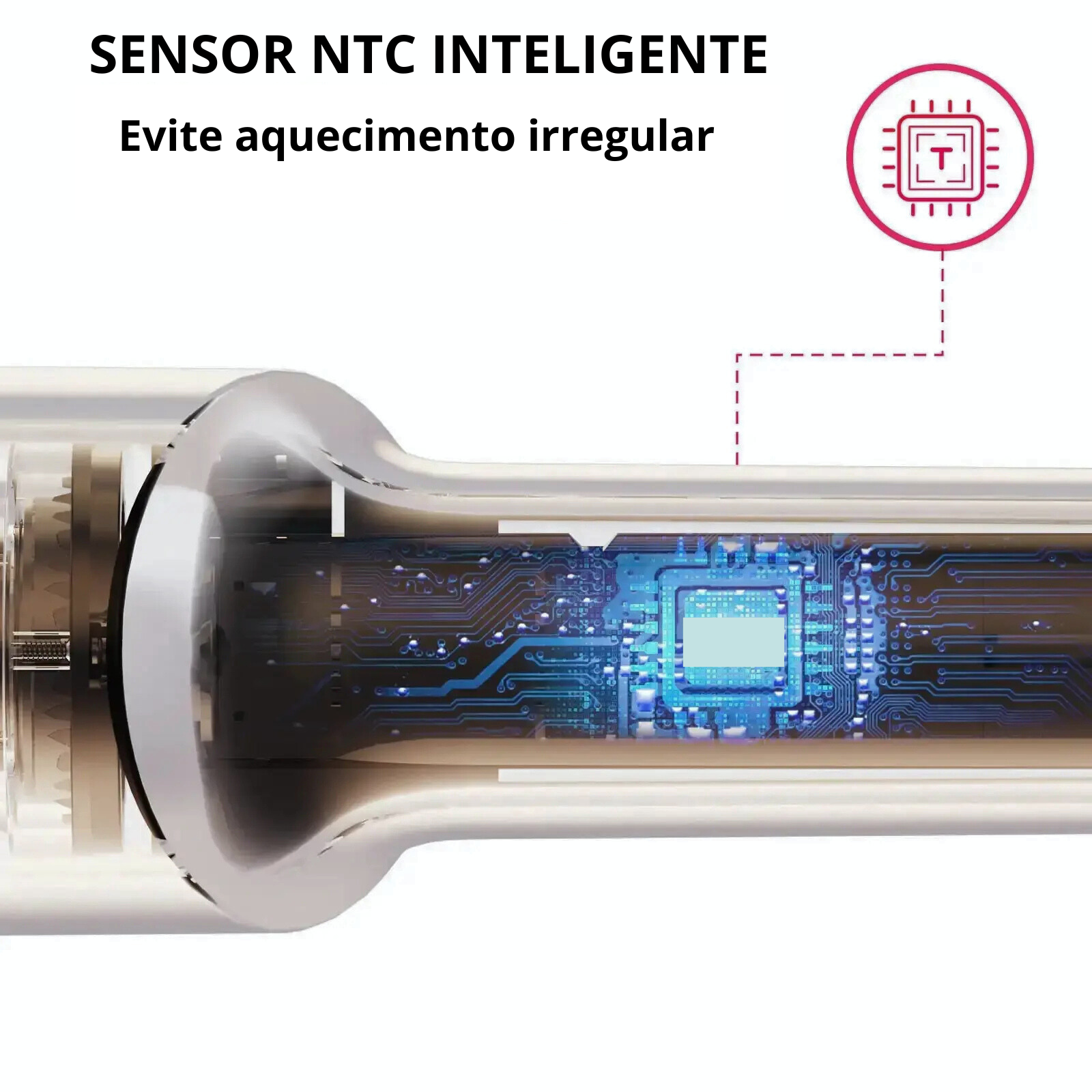 Controle Inteligente de Temperatura + Timer Inteligente 8S. O sensor NTC garante uma regulação precisa do calor com 1000 controles por segundo, reduzindo o risco de superaquecimento. O aquecimento pausa a cada 8 segundos para proteger seu cabelo de altas temperaturas prolongadas.