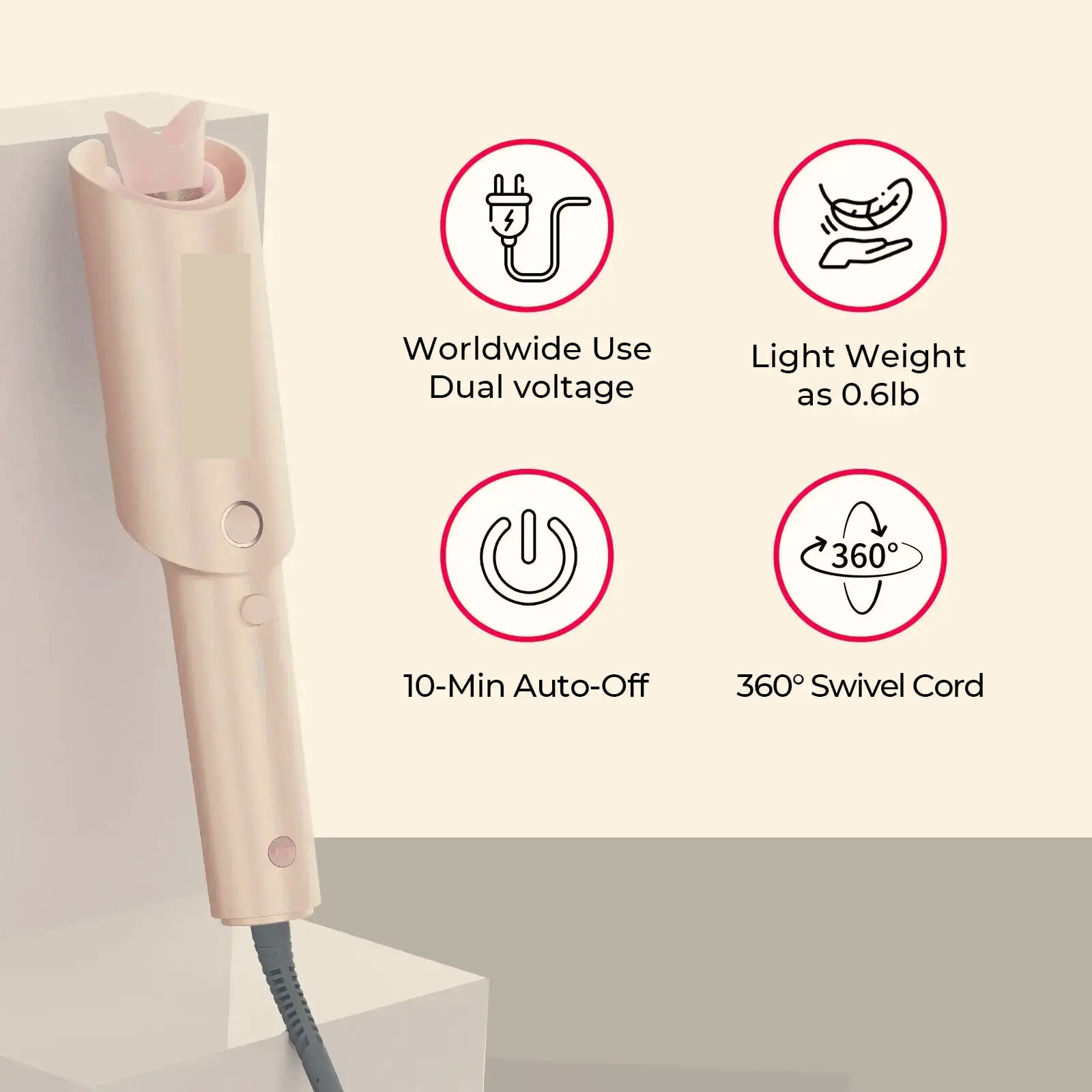 Obtenha cachos rápidos e consistentes em apenas 10 minutos com o modelador de cachos automático CURLPRO. Projetado para iniciantes, ele possui uma função de rotação de um clique para eliminar o incômodo da modelagem. A estrutura anti-queimadura de 360°, fria ao toque, garante um uso seguro e sem emaranhados, tornando-o ideal para todos os tipos de cabelo. Infundido com revestimento cerâmico T-GLOSS e 200 milhões de íons negativos, o CURLPRO retém a umidade, proporciona um brilho deslumbrante e cria cachos duradouros que duram até 72 horas. Prepare-se para ondas suaves e com qualidade de salão, sem esforço algum.